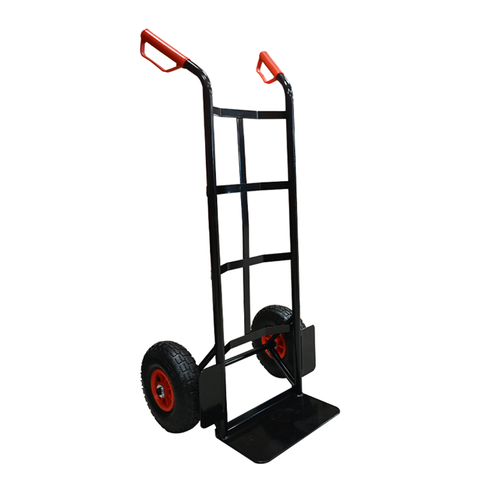 Оваа транспортна количка има цврста метална конструкција со димензии 1180 mm во висина, 550 mm ширина и 465 mm длабочина. Дизајнирана е за лесно и безбедно преместување на товари до 200 кг. Има две големи тркала кои овозможуваат стабилност и прилагодливост на различен терен, додека рачките со црвени силиконски капаци нудат сигурен и удобен хват.